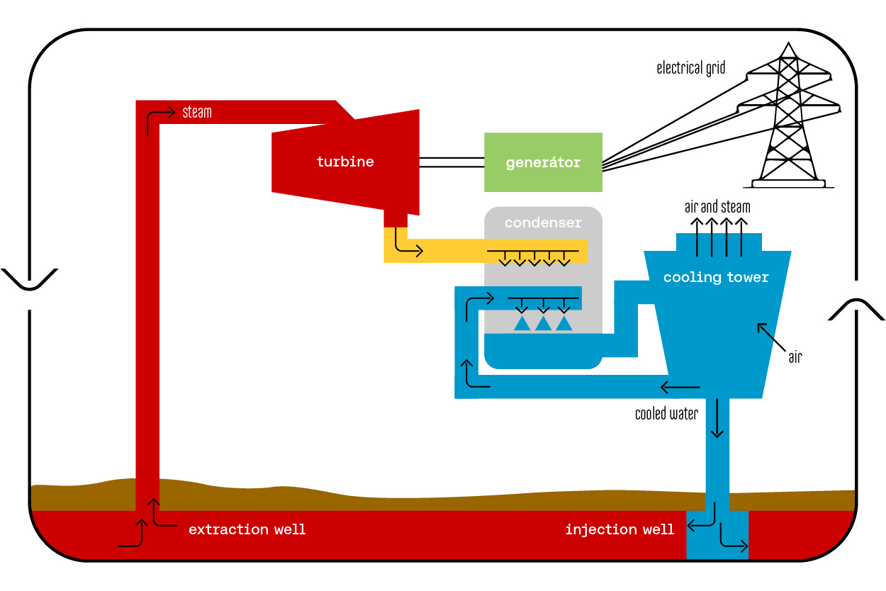 If the extracted medium is high-pressure steam, it is directed directly to the turbine, which drives the generator. Hungary does not have the geological conditions for this procedure.